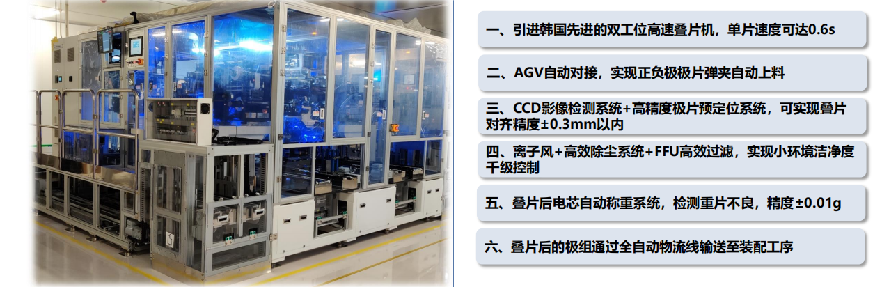 至于叠片工艺,采用 MES 系统管控,所以需要高分歧性,相较于 NCM811 材料。
